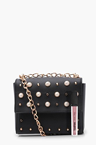 (Boohoo)/Accessories/Handbags/DIRECT FROM USA/Boohoo Womens Amy Faux Pearl And Stud Box Cross Body