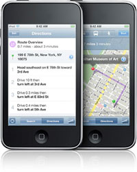 Just like Google Maps on your computer?? Maps on iPod touch lets you switch between views of Google map data?? satellite images?? and a hybrid of both. Multi-Touch makes the difference. Tap to zoom?? pan?? and change your view on the move.