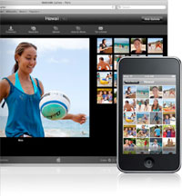 iPod touch uses iTunes to sync photos you have in iPhoto on a Mac or in Adobe Photoshop Elements and Adobe Photoshop Album on a PC. Just choose which photos or albums to sync to your iPod touch?? then you can look at them--and share them--anywhere you go.