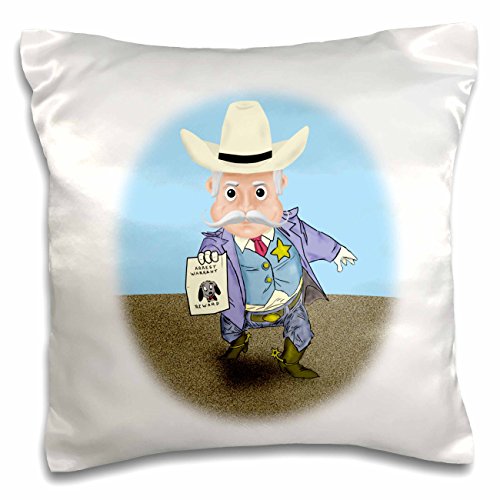 3dRose A new Sheriff in town. Cartoon old west sheriff with arrest warrant - Pillow Case, 16 by 16-inch (pc_201694_1)