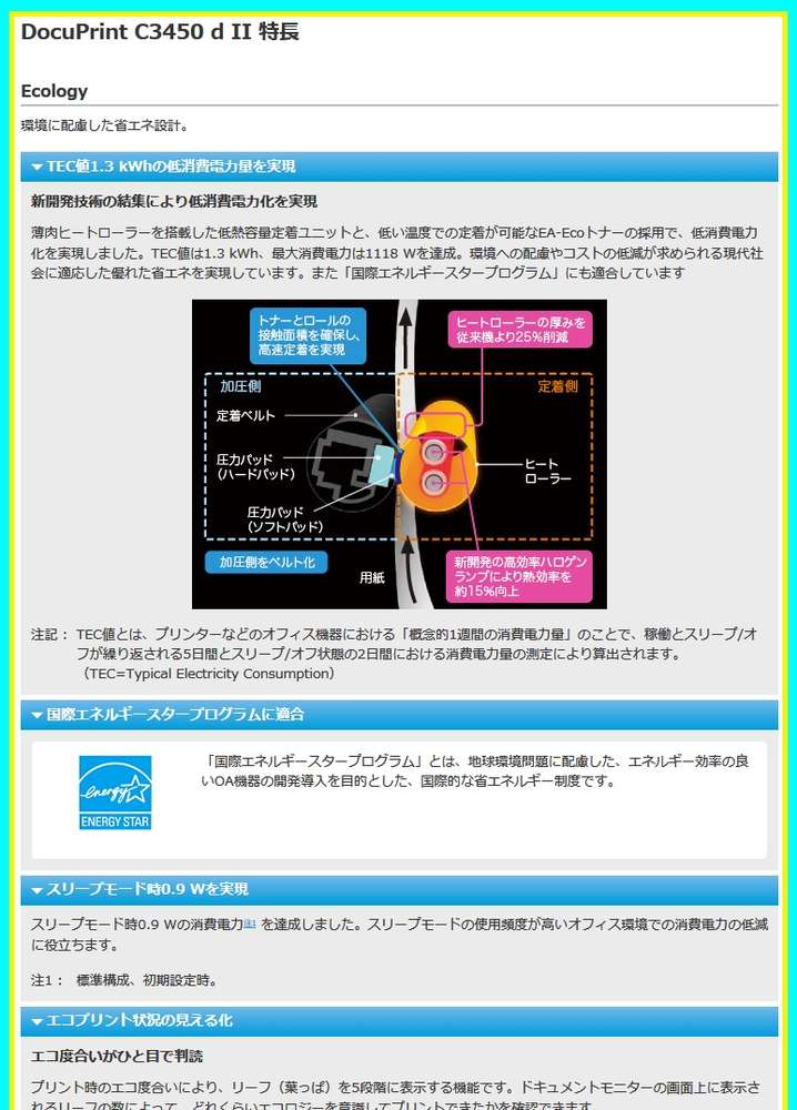 ●さまざまな省エネ設計により、低消費電力量を実現したA3高速カラープリンター。