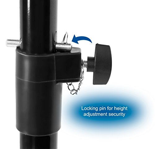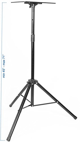 -. Feature : PORTABILITY - Foldable and compact design along with light material make the stand easy to move from place to place / MATERIAL - Constructed of high grade steel, both durable enough to keep your equipment secure and lightweight enough to carry / ADJUSTMENT - Simple height adjustment between 45" and 71" in addition to swivel and tilt mechanics / VERSATILITY - Great for use in a myriad of situations including classroom, stage, studio, office, and more / ASSEMBLY - Simple and minimal assembly required outside the box