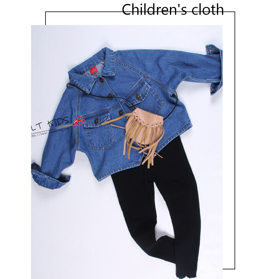Product Name:Girls Kids Lapel Denim Jacket Slim Short cotton Coat Jeans