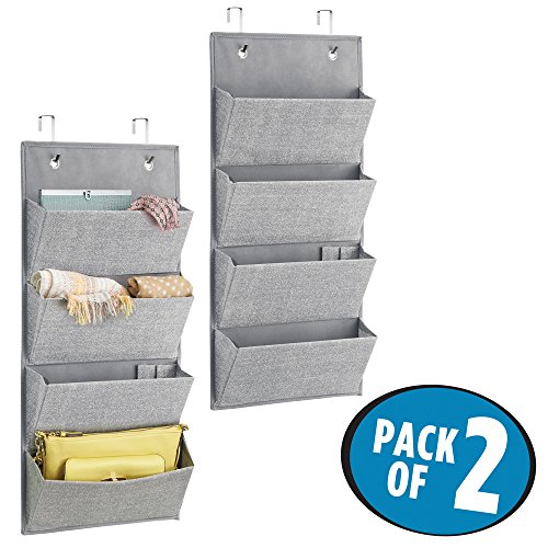 - COMBO PACK OF 2: Over-Door Fabric Closet Organizers feature 4 spacious pockets and 2 mini pockets each for extra storage in your hallway, bedroom or dorm closets