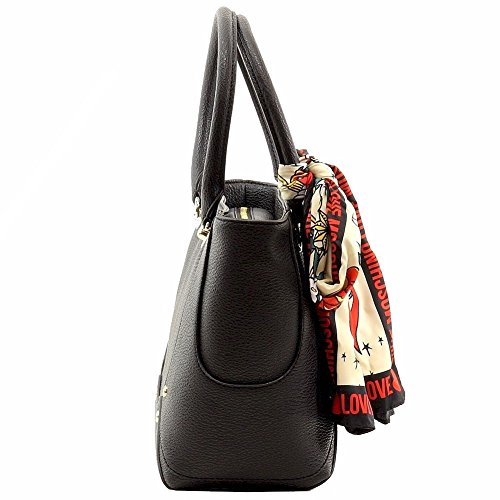 -. Brand : Love -. ClothingSize : 9.5 H x 12 L x 6 D Inches -. Color : Multi-color -. Department : womens -. Feature : Soft Pebble Faux-Leather Exterior / Love Logo At Front & Studded Detailing / Top Double Handles & Top Zipper Closure / Interior Zipper Pocket & Slide Pocket / Dimensions: 9.5 H x 12 L x 6 D Inches -. Label : Love -. Manufacturer : Love -. Model : JC4126PP00KB0 -. MPN : JC4127PP00KB0 -. PackageQuantity : 1 -. PartNumber : JC4127PP00KB0 -. ProductGroup : Apparel -. ProductTypeName : HANDBAG -. Publisher : Love -. Size : 9.5 H x 12 L x 6 D Inches -. Studio : Love -. Title : Love Women's Pebbled & Studded Satchel Handbag W/Scarf