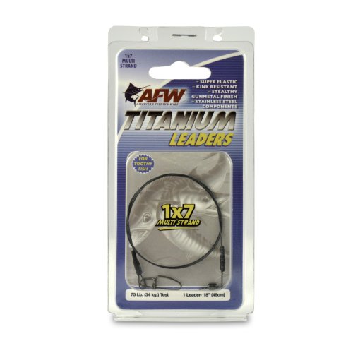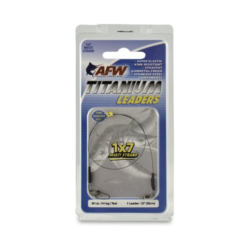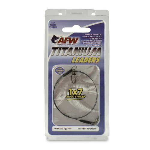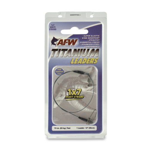 ReleaseDate : 2011-03-21 Studio : American Fishing Wire Publisher : American Fishing Wire Binding : Sports Product Description Super-elastic 1x7 Multi Strand Titanium Leaders stretch to absorb the strike of a fish, then snap back and recover during the hook-set. These leaders are made with AFW’s special blend of Titanium alloy wire - engineered to deliver tremendous strength along with dramatic kink resistance. Fish with confidence knowing these are among the highest quality leaders available. Crimped ends are covered with black shrink wrap for a smooth, low profile, stealthy design. Leaders are made with AFW’s new 100% stainless steel Mighty Mini Swivels with a compact design that is up to 3x’s stronger than brass swivels ? providing less drag and smooth rotation. Snaps are high strength stainless steel crosslock style for maximum security. Use multi strand leaders for the best bite protection, superior flexibility and unmatched kink resistance. 0