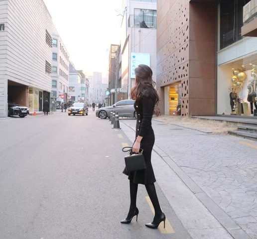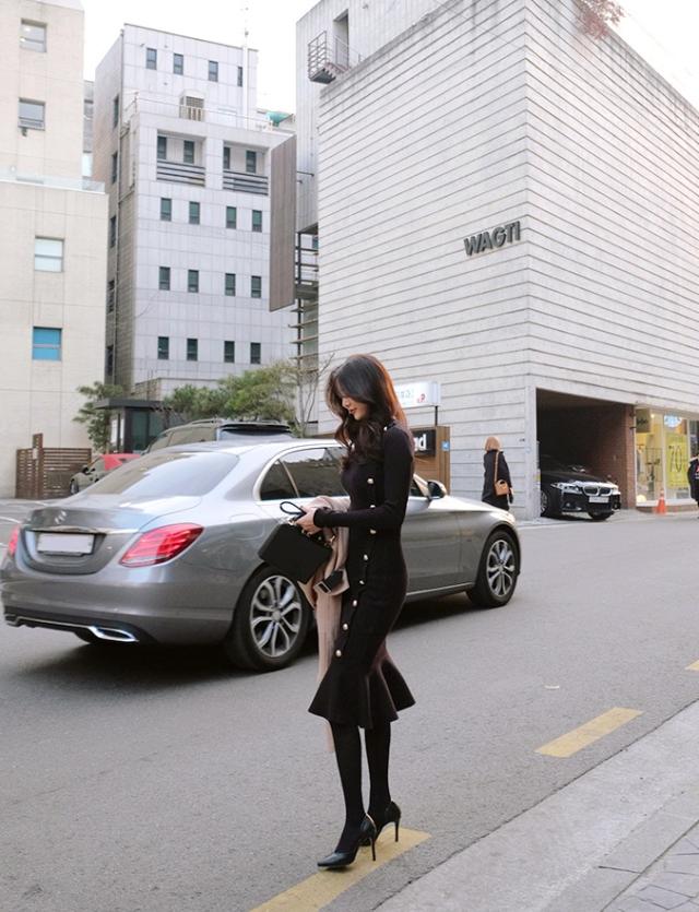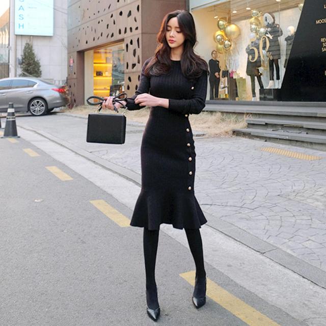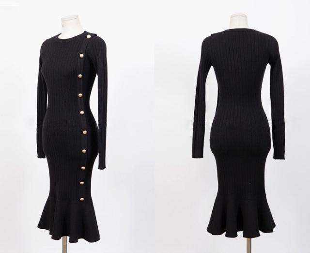 クルーネック タイト 長袖 無地 ロング エレガントスタイル マーメイド