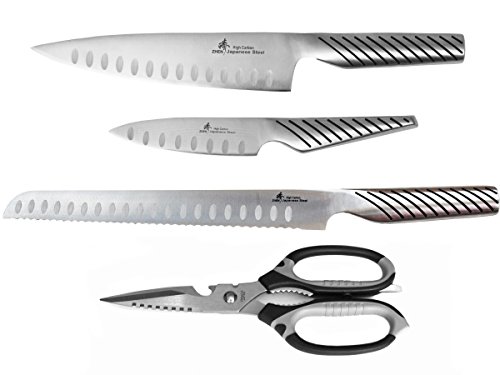 ZHEN JAPANESE HIGH CARBON STAINLESS STEEL 8" CHEF'S KNIFE, 10.5" BREAD KNIFE AND 6" SHEARS SET, SILVER