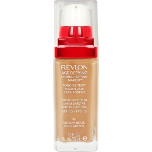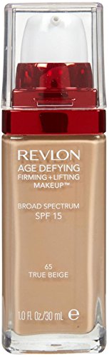 The Revlon Age Defying Firming and Lifting Makeup is inspired by the latest advances in anti-aging, this all-in-one formula combines hyaluronic acid, Revlon's exclusive Triple Lift Complex, and moisturizing ingredients. Relaxes the look of expression lines, smooth skin, and boost hydration 3X for a rejuvenated look*. 93% of women saw noticeably improved skin**. Protects your skin with SPF 15. Available in 12 shades. *Skin feels tighter after (4) weeks, rejuvenated after (1) week. **After just (8) weeks.Feature