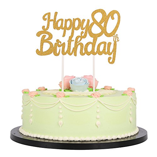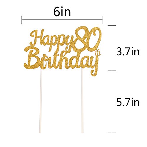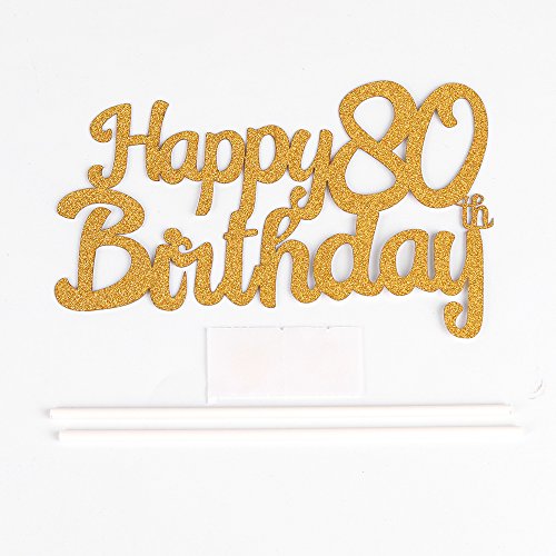 LXZS-BH Gold Glitter Happy Birthday 80th Cake Topper,Party Cake Decoration Supplies