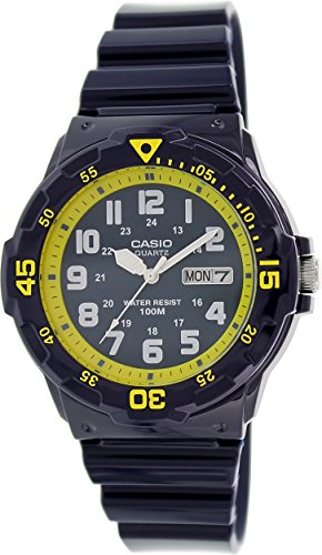 Stainless steel watch with white band featuring black bezel and dial with date window at three o'clock