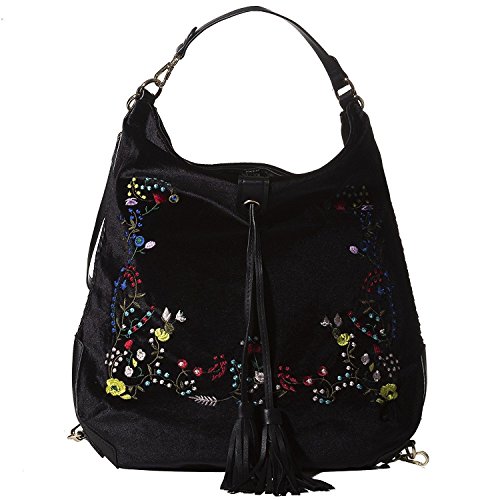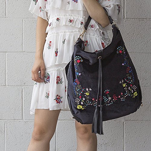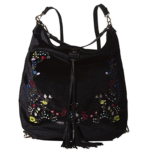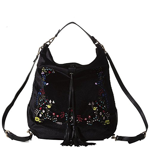 -. Title : Versatile 3-Way, Embroidered Velvet Hobo/Crossbody/Backpack by Handbag Republic