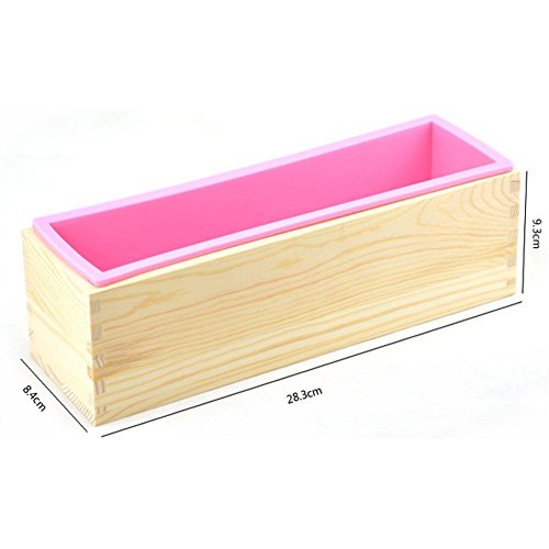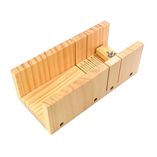 Peicees Adjustable Wooden Soap Loaf Cutter Mold + 2 Pieces Stainless Steel Cutters + Rectangle Silicone Mold with Wood Box