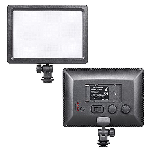 - Feature : It consists of 112 pieces highlighted LEDs, with mighty power and balanced luminance. / Ultra thin flat panel with thickness of 0.6"/1.5cm. Base support with 1/4" standard screw hold hot shoe adapter. / Brightness Adjustment: Knob stepless dimmer. / Quick charge with automatic constant current control prevents battery from overcharging, short circuit, and electronic shock. / Kit Includes: 1 * 112-LED Video Light, 1 * Battery Pack Replacement for NP-F550/570, 1 * 4-in-1 Battery Charger.