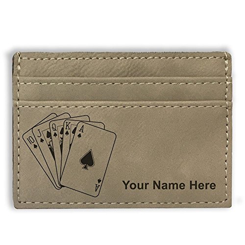 -. Binding : Apparel -. Brand : SkunkWerkz -. ClothingSize : Medium -. Color : Light Brown -. Department : mens -. EAN : 0654975841696 -. Feature : The Money Clip Wallet is laser engraved with the image that you see in the photo. / Your name or personalized message will be engraved on the wallet for free. / Synthetic leather construction. Includes space for 3 credit cards. / You may have one line of engraved text - 20 characters maximum. / Click the "Customize Now" button to begin customizing your wallet. -. ProductGroup : Apparel -. ProductTypeName : ACCESSORY -. Size : Medium -. Title : Money Clip Wallet - Royal Flush Poker Cards - Personalized Engraving Included (Light Brown) -. UPC : 654975841696