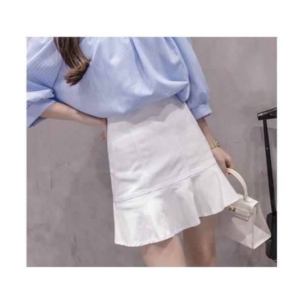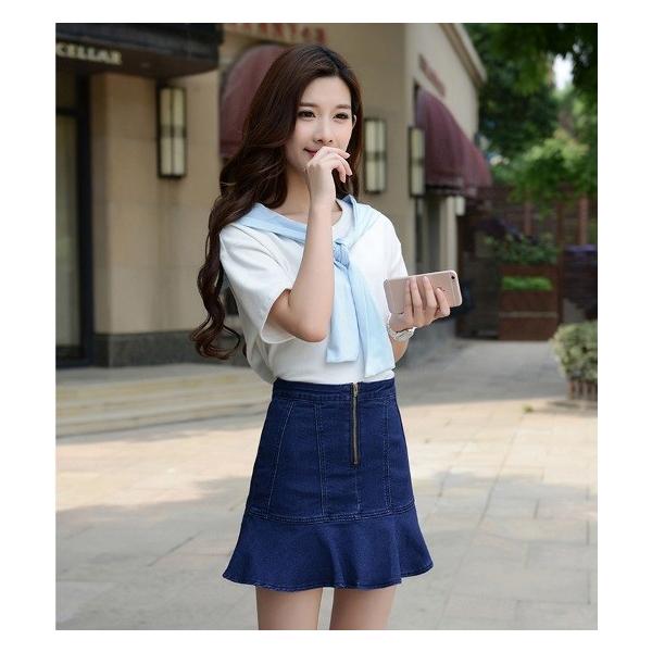 タイトなフォルムと裾フリルの可愛いデニムスカートです。