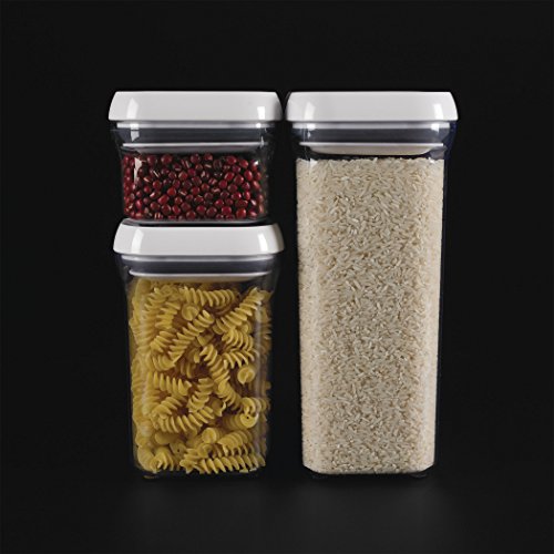 Feature : Airtight seal with the press of a button / Pop-up button serves as handle to lift off lid / Modular stacking system for optimal countertop and pantry organization / Silicone gasket is dishwasher safe, hand wash other parts / 0.8 quart Container is the ideal size for baking items, biscotti, crackers, flatbreads, nuts and more / Also great for use in the garage, sewing room, play room and more / Square and rectangular shapes maximize space-efficiency / Container corners allow for easy pouring