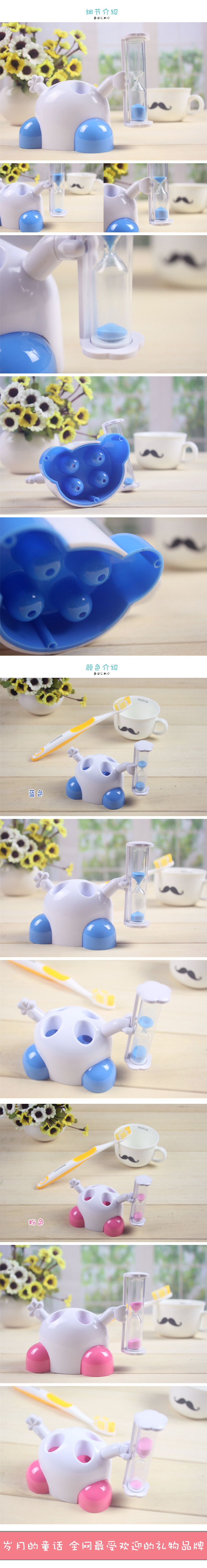 Brushing hourglass seat can be rotated upside down, timed three minutes, allowing you to view and control the scientific and reasonable brushing time. Is not a trend and stylish bathroom to share it? Kids will love this brushing seat belt hourglass timer oh lovely image, practical and lovable. Cute little hands grasping a small hourglass, the hourglass can be rotated, the timing is about three minutes to remind you to brush your teeth to seriously, do not be lazy Oh ~ super cute Q version modeling
