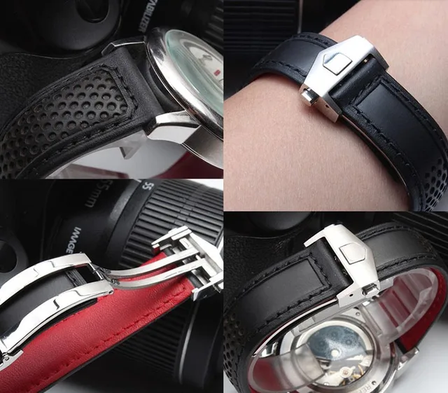 | [해외]22 미리메터 가죽 손목 시계 밴드 스트랩 팔찌 레드 바닥 남성 브랜드 방수 시계 액세서리 높은 품질 |