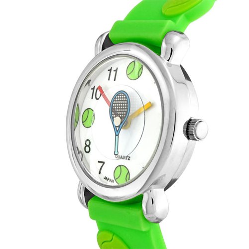 -. Feature : Childrens Green Watch with Tennis Racket Band / Band is Adjustable from 5 to 7 inch / Material: Rubber, Stainless Steel, Alloy / Measure: 7 inch L x 1 inch W / Weight: 23.7 Grams
