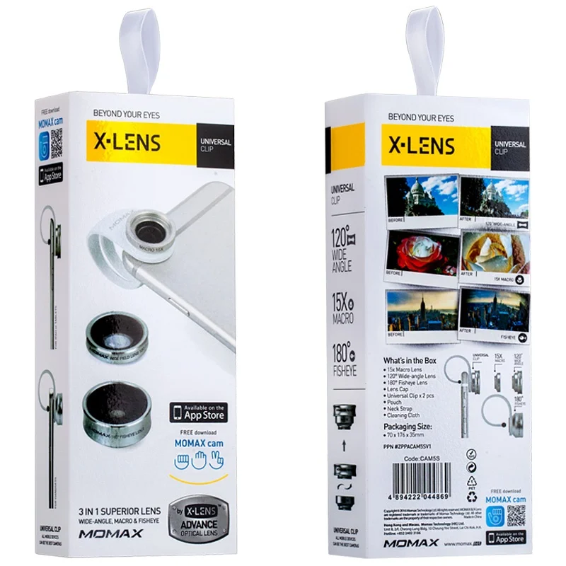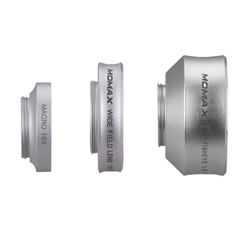 MOMAX X-Lens 3-In-1 120-Degree Wide Angle & 15X Macro & 180 Degree Fisheye Lens Kit with Universal Clip for Mobile Phone