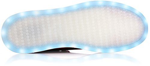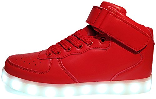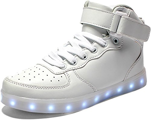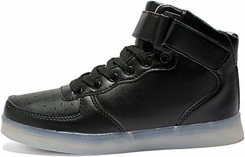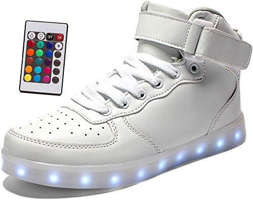 Binding : Apparel Product Description These Poppin Kicks' light up high top sneakers let kids take their favorite characters with them everywhere they go. Highlighting an incredible LED sneakers shine that makes you look like walking on laser. Enjoy an assortment of the fantastic LED colors, choose between 7 static colors: red, green, blue, lime green, teal, purple and white, 1 strobe mode or 3 color changing modes that you can customize with a quick click of a button based on your outfit or mood. Each LED sneaker is equipped with an easily accessible USB rechargeable battery that takes only 3 hrs to charge and lasts up to 8 hrs of glow time. Tips: 1. Upon arrival, the shoes may be partially charged, but for a long lasting experience, we recommend charging them fully before using for the first time. 2. The on/off device with charger port is located on the inside of each shoe. Easy charging with USB cord to computer, power bank or charger adapter. 3. Simply connect the micro USB cord to the charger port to charge both sneakers at the same time. There is Red light when still charging, it will change to Green when fully charged. 4. Simply click the button located on the charger port to light up and change colors. To turn it off, keep pressing the button up to 2 seconds until it turns completely off. Before You Buy We recommend that you order a half size up if you are in-between sizes. A little about Poppin Kicks: Poppin Kicks footwear offers fitting choices for school, fun, play and sports. Committed to producing high-quality sneakers, sandals, boots and shoes for kids and fashion-forward adults. Here you'll find an incredible selection of fashionable footwear. Each season, we are thrilled to offer you cutting-edge fashion with the essence of quality and charming styles. Each shoes are crafted with a patented process to maximize flexibility and minimize pressure for all-day comfort. 0