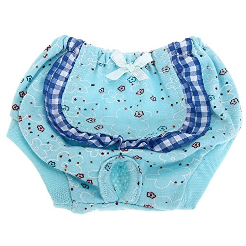 Specifications: Color: Blue,Pink,Yellow (Option) Sizes available: Small, Medium, Large (Option) These pants will fit waists: ( Waist Rubber Band can stretch ) S waist:24cm/9.45", Suitable for waist:22cm-28cm/8.66-11.02" ,Length:10cm/3.94" M waist:28cm/11.0", Suitable for waist:25cm-32cm/9.84-12.60" ,Length:13cm/5.12" L waist:31cm/12.2", Suitable for waist:28cm-38cm/11.0-14.96" ,Length:15cm/5.90" NOTE: It is manual measurement, there may be 2-3cm error. And item color displayed in photos may be showing slightly different on your computer monitor since monitors are not calibrated same.hope understanding. Package Content: 1* Dog Sanitary Pant 0