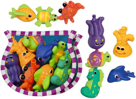 Studio : Sassy Publisher : Sassy Binding : Baby Product Product Description The Sassy Snap Squirt Sea Creatures make bathtime fun. These interactive toys help to develop your baby's motor skills by encouraging a variety of hand movements. Set of 9 creatures float, squirt and snap together. Fishbowl tote makes cleanup fun and easy with 2 large suction cups to attach to bath surface. For 6 Months. 0