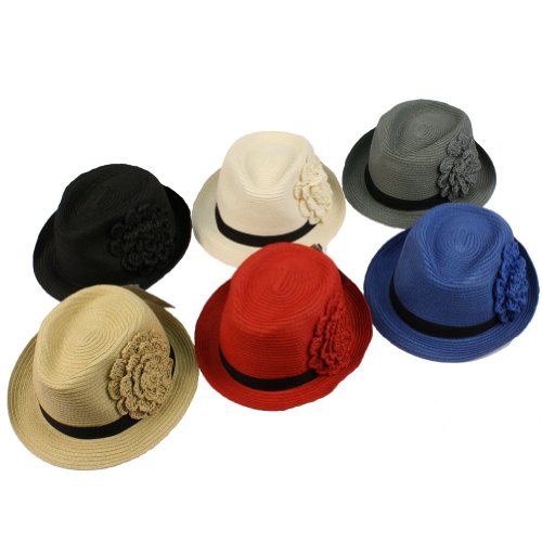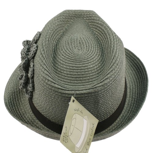 -. Title : Summer Spring Flower Hatband Crushable Fedora Trilby Sun Hat Cap Gray 57cm