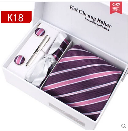 | [해외]새로운 브랜드 남성 보라색 스트라이프 넥타이 세트 손수건 커프스 w 선물 상자 넥타이 폴리 에스테르 아저씨 Gravata 클래식 드레스 넥타이 |