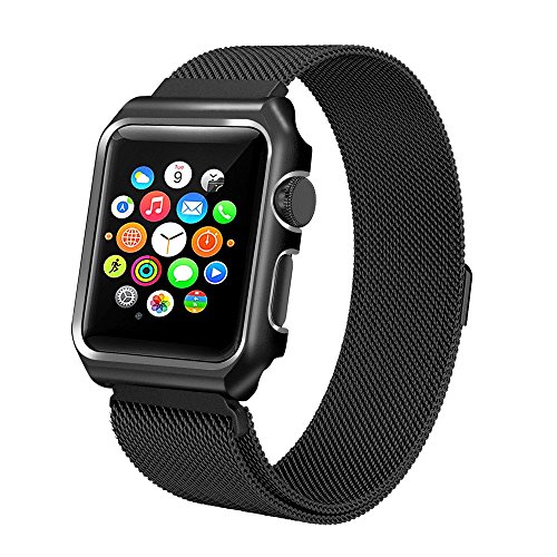 -. Title : Apple Watch Band 42mm , EACC Stainless Steel Milanese Loop with Metal Protect Case Frame, Adjustable Replacement Strap with Magnetic Closure for iWatch Series 3 2 1 Sport & Edition – Black