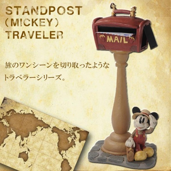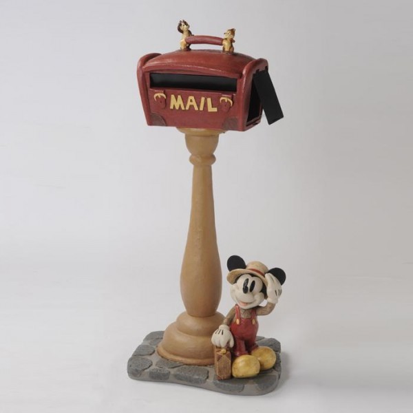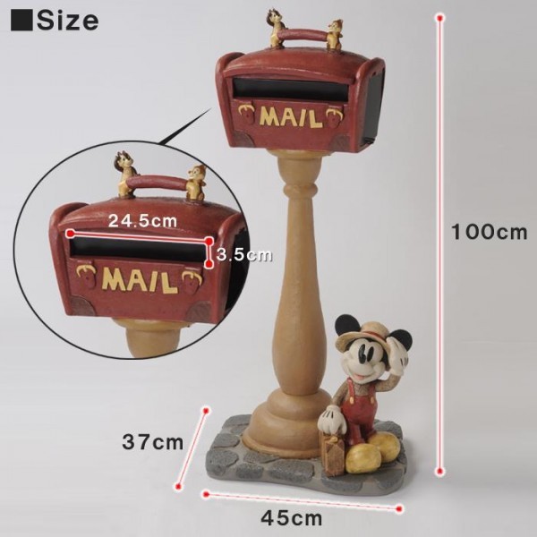 | 挨拶してくれているミッキーと、キュートなチップ&デールがたいせつな手紙やあなたの帰りを待ってくれます。存在感たっぷりなポストがお家のシンボルになってれそう。 |