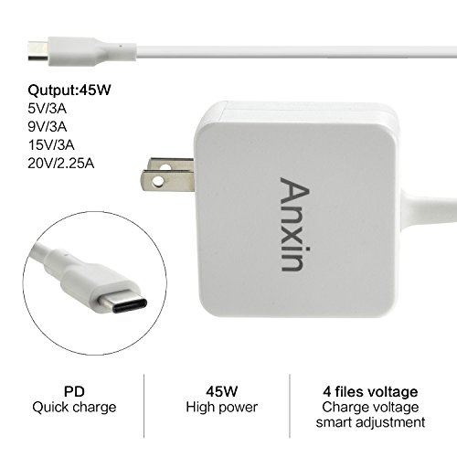 -. Binding : Personal Computers -. Brand : Anxin -. Label : Anxin -. Manufacturer : Anxin -. PackageQuantity : 1 -. ProductGroup : PC Accessory -. ProductTypeName : COMPUTER_ADD_ON -. Publisher : Anxin -. Studio : Anxin -. Title : Anxin 45W USB-C Laptop Charger Power Delivery PD is Intelligent wall Charger with USB C for New MacBook iPad Pro Dell XPS 13 Asus ZenBook and Nintendo Switch Samsung S8 and more type c powered