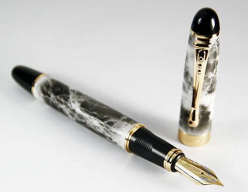 -. Title : Gray Marble Look Cigar Golden Ring Fountain Pen with Push in Style Ink Converter
