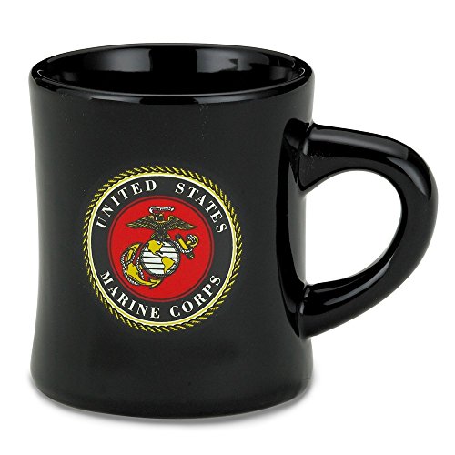 MCI United States Marine Corps Decal Logo Black Stoneware Diner Mug - Holds 10 Ounces