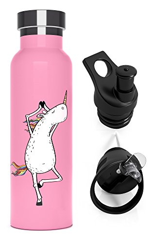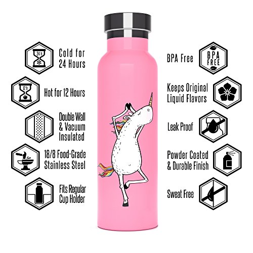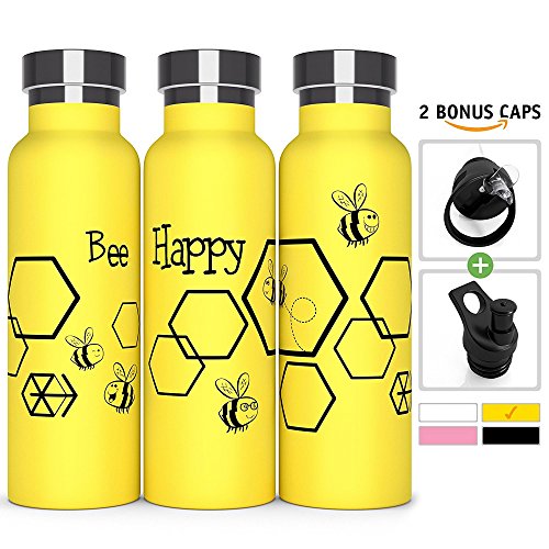 VACUUM INSULATED & DOUBLE WALL: Our 20 oz high-quality vacuum insulated water bottle works as a thermos and will keep your drinks cold up to 24 h and hot up to 12 h. Double walled construction is designed to prevent from forming condensation on the outside of the bottle.
