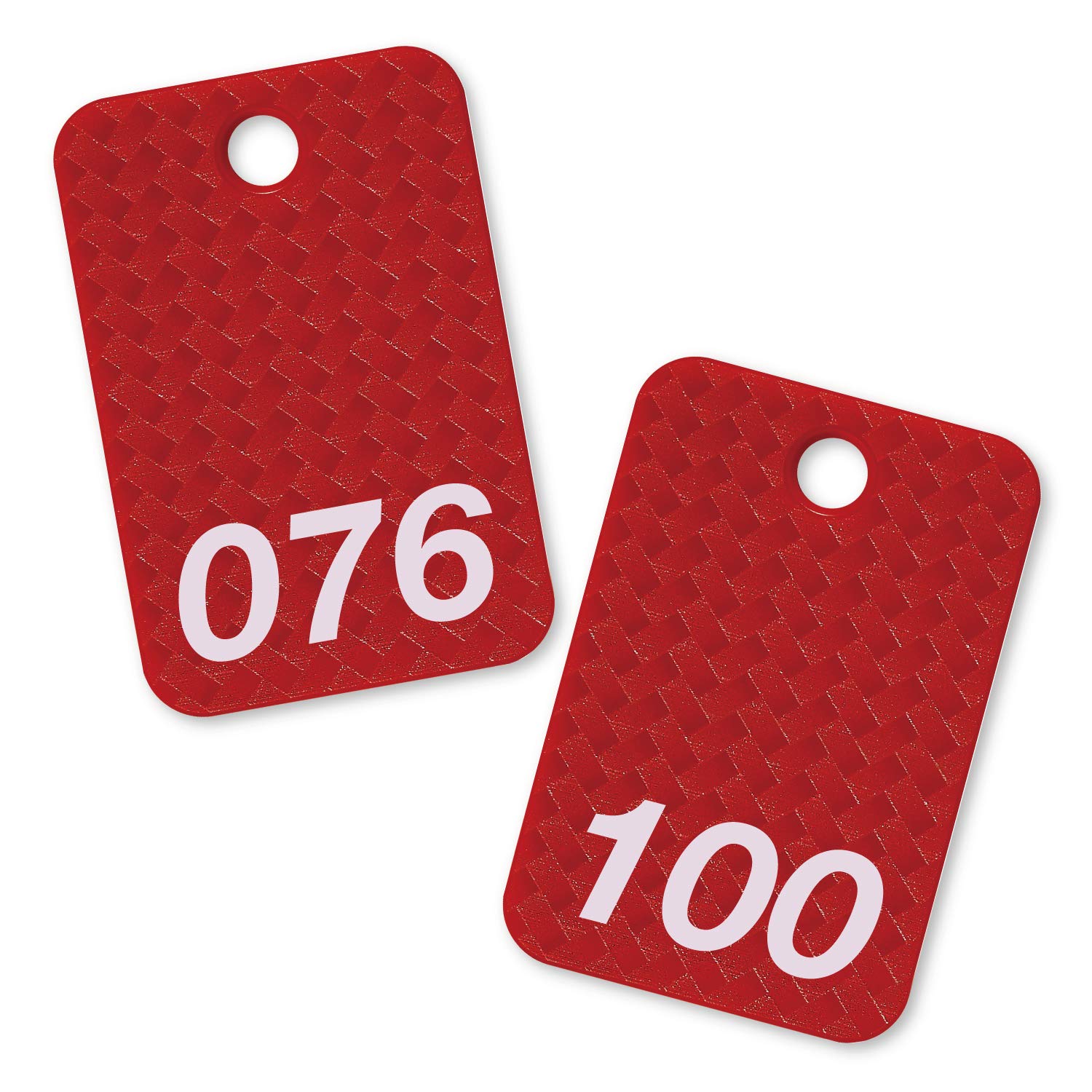 高級感のある網目柄の角型番号札 荷物のお預かりや順番待ちの整理券として使用できます。 【サイズ】W40×D60×H2.7 【穴径】約6.5mm 【入り数】25枚 【内容】番号札76~100 【材質】再生PS 【生産国】日本
