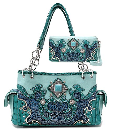 Western Concealed Purse Wallet Set, Turquoise Concho