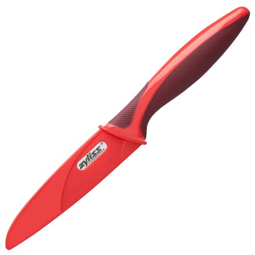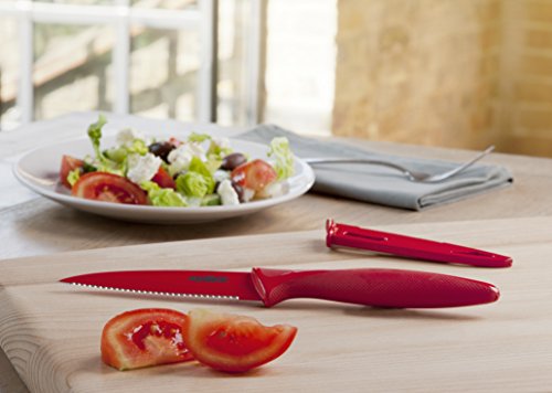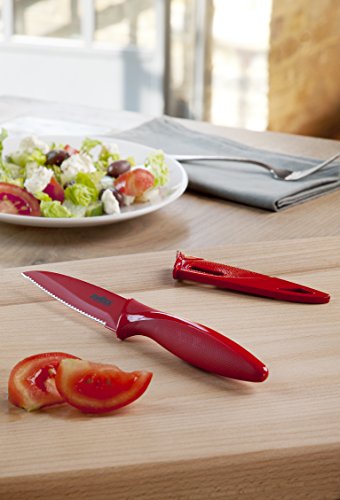Zyliss Serrated Paring Knife with Sheath Cover, 4-Inch Non-Stick Stainless Steel Blade, Red