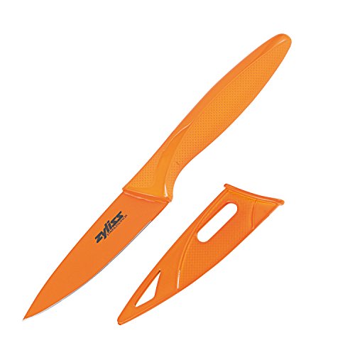 Zyliss Paring Knife with Sheath Cover, 3.5-Inch Non-Stick Stainless Steel Blade, Orange
