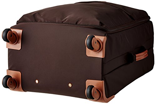 -. Feature : Superlight frameless 4-wheel spinner with a spacious interior and zippered pocketing / PVC coated polyamide, treated with waterproofing finish on outer / 5 year limited manufacturer's warranty / 25x16x9