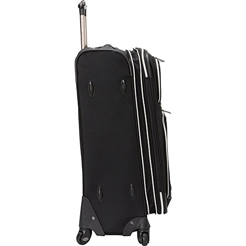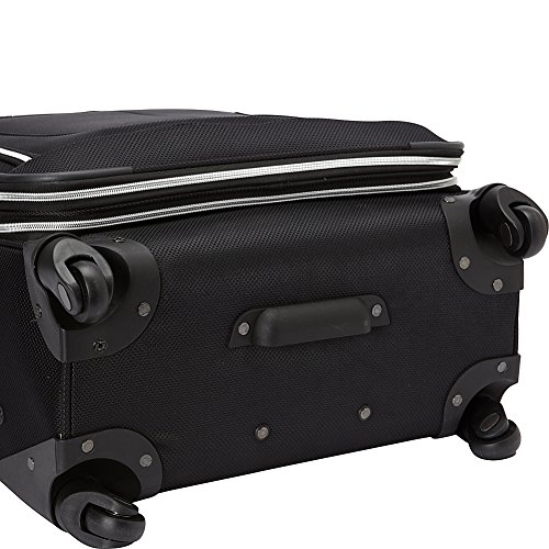 -. Feature : Expands for greater carrying capacity / 4-wheel spinners allow smooth 360 degree rotation / Spacious wide-body construction / 1680d durable ballistic dobby polyester exterior body material with fully lined interior / Front exterior includes two gusseted easy access zipper pockets for frequently needed items