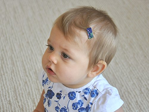 Ribbon covered mini latch WISP clips that comb into fine baby hair and stay exactly where you put them! We chose our most popular ribbon patterns for those that want a clip that lays flat and adds that subtle modern accessory to any outfit. No silicone sleeves on these specially designed latch clips made of stainless steel that lay flat on the head and are about 23 mm long. Featuring the Baby Wisp® clip, the amazing mini latch clip for fine hair. Our mini latch clips stay in place even on arm hair! You can see the tiny comb interweave between hair and lock into the teeniest peach fuzz hair, latch on and hold in place! These clips stay on securely and comfortably on babies' fine or barely any hair - they really work! So no need to worry if your baby doesn't have enough hair, we've got you covered! This package consists of six (6) Urban clips. Many more colors on our website if these ones aren't for you! Looks best on 0-12 months. All our clips are mercury, lead and cadmium free. So they are perfectly safe for your little angel. Check out more products and colors at www.babywisp.com! 0 |