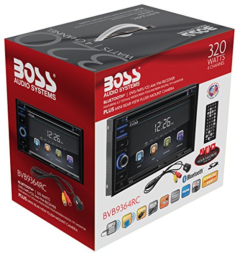 Ramp up your music choices on your next road trip with the Boss Audio BVB9364RC DVD Player and 6.2" Touchscreen Monitor. Slide in a DVD or CD, plug into the SD and USB ports or hook up your smartphone to the Auxiliary input to listen to your playlists. Bluetooth technology lets you stream music apps like Pandora and Spotify and make calls hands-free. Reverse with confidence in tight spots with the included rear-view camera. Change up the sound style with the Preset EQ. Make easy adjustments with the wireless remote, existing steering wheel controls (interface required, not included) and touchscreen monitor. Put your entertainment into high gear with the BOSS Audio BVB9364RC.