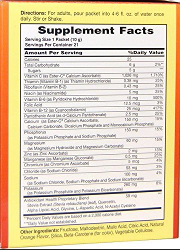 -. Binding : Health and Beauty -. Brand : American Health -. EAN : 0076630588805 -. Feature : American Health - Ester-C Effervescent Powder 1000mg Plus Electrolytes - Orange - Box/21 Packets / Buffered Vitamin C 1000mg Plus Electrolytes / Once Daily - Non-GMO - No Artificial Sweeteners / Suitable for Vegetarians -. Label : American Health -. Manufacturer : American Health -. MPN : AM0230 -. PackageQuantity : 1 -. PartNumber : AM0230 -. ProductGroup : Health and Beauty -. ProductTypeName : HEALTH_PERSONAL_CARE -. Publisher : American Health -. Studio : American Health -. Title : American Health Ester-C Effervescent 1000 Mg 21/.35 Oz Packets In A Box-Natural Orange Flavor 21 PKT -. UPC : 076630588805