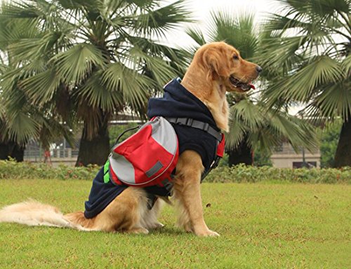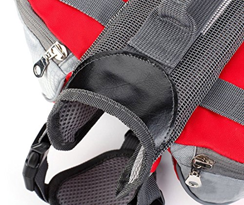 -. Feature : Convenient pockets for carrying food, water, and gear for you and your pet wherever you go. / Stylish, Lightweight and Washable,Made of R/S PU/420D PU;The PU mesh in the middle is breathable and cooling, bring your loved dog comfortable feelings. / Neck circumference is adjustable;The bag inner have sandwich air net, very comfortable. / With light reflection stripe on the backpack,you can see your dog's activities on night.