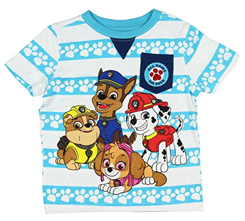 Paw Patrol Toddler Little Boys Group Shot T-Shirt (5T, White / Blue)
