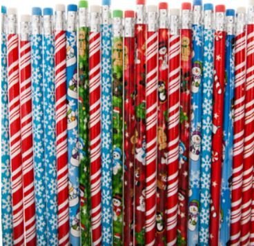 A colorful supply of celebratory stationery. This collection of pencils features a festive variety of holiday themes. Lot Of 144- assorted Christmas/Holiday theme