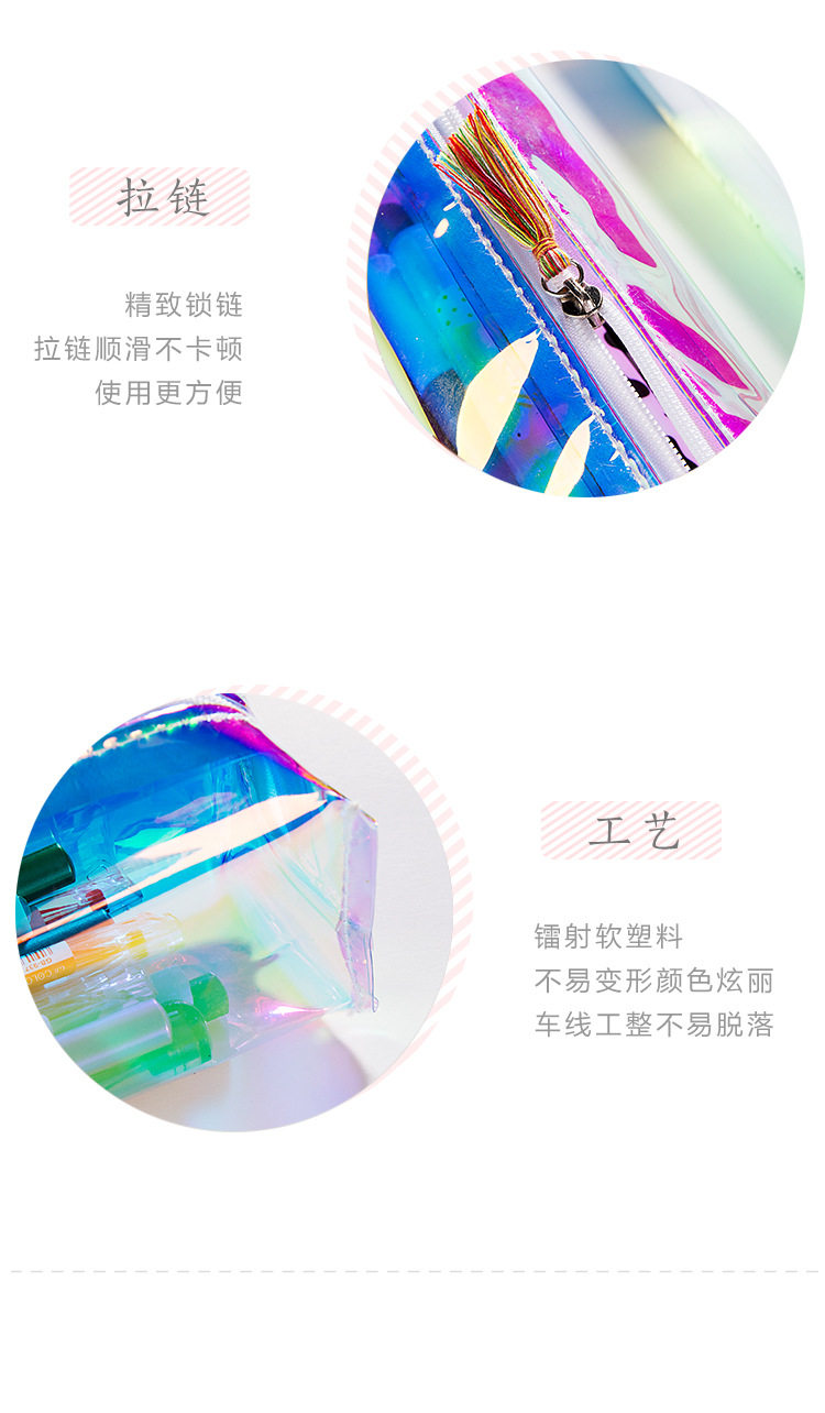 日韩国原宿镭射透明圆筒铅笔袋流苏收纳透明学生小清新简约文具袋