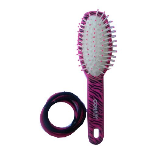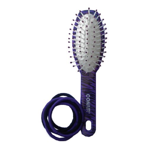 -. Feature : brush and ponytail holder set by Conair / The brush measures 7 inches long - Great for kids! / 6 bonus matching pony tail holders / zebra pattern in blue, pink OR purple / ball tipped bristles